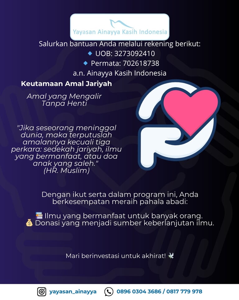Program-program sosial dari Yayasan Ainayya Kasih Indonesia sangat menyentuh, dari bantuan pendidikan, kesehatan, hingga pangan. Ini adalah tempat donasi yang terpercaya dan amanah.